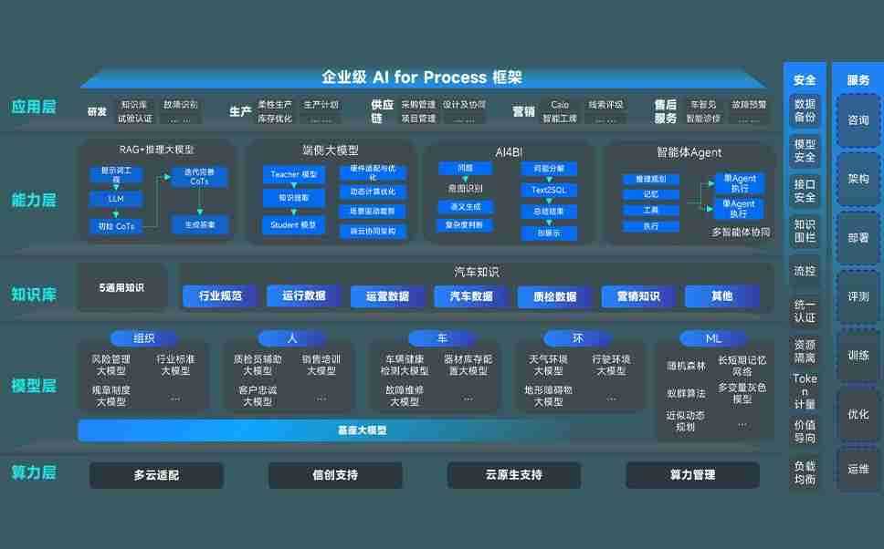 端到端的一站式AI工作空间深度融合了从企业战略规划到日常经营的全流程业务板块,,,定向解决车企内部领域多、、、、部门多、、、、链条长、、、、场景碎片化等难题,,,支持车企快速构建以AI为核心的生产力写作体系,,,实现任务执行与AI能力的无缝集成与交互